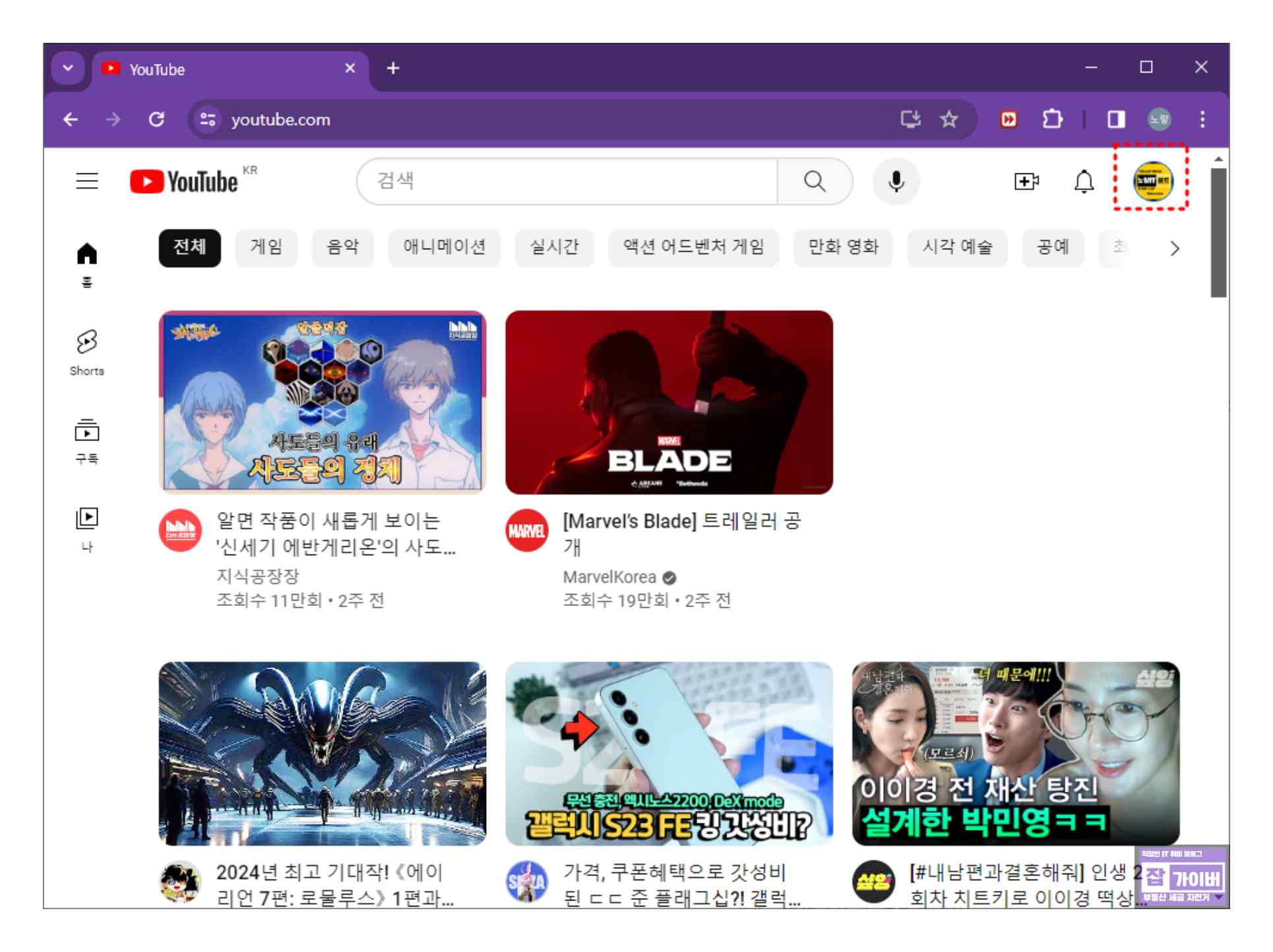 우선 본인의 구글계정에 로그인한 뒤 유튜브로 접속합니다.
