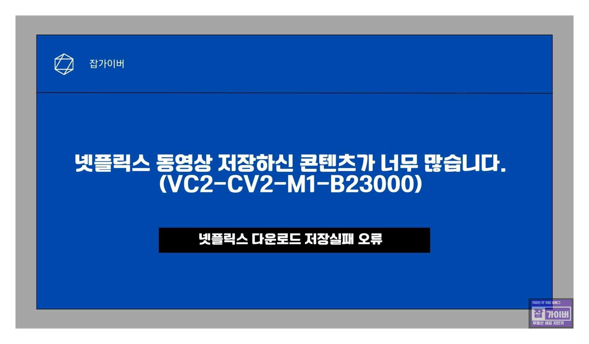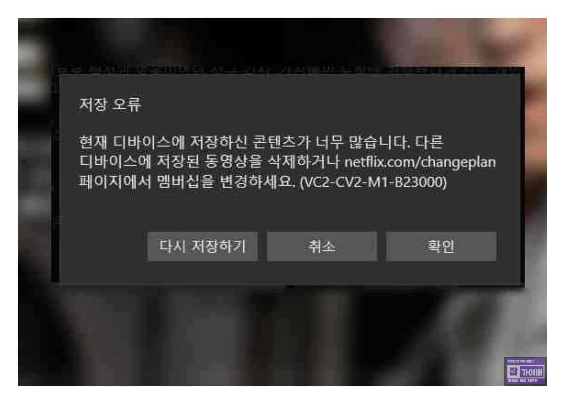 넷플릭스 동영상 저장하신 콘텐츠가 너무 많습니다. (VC2-CV2-M1-B23000)