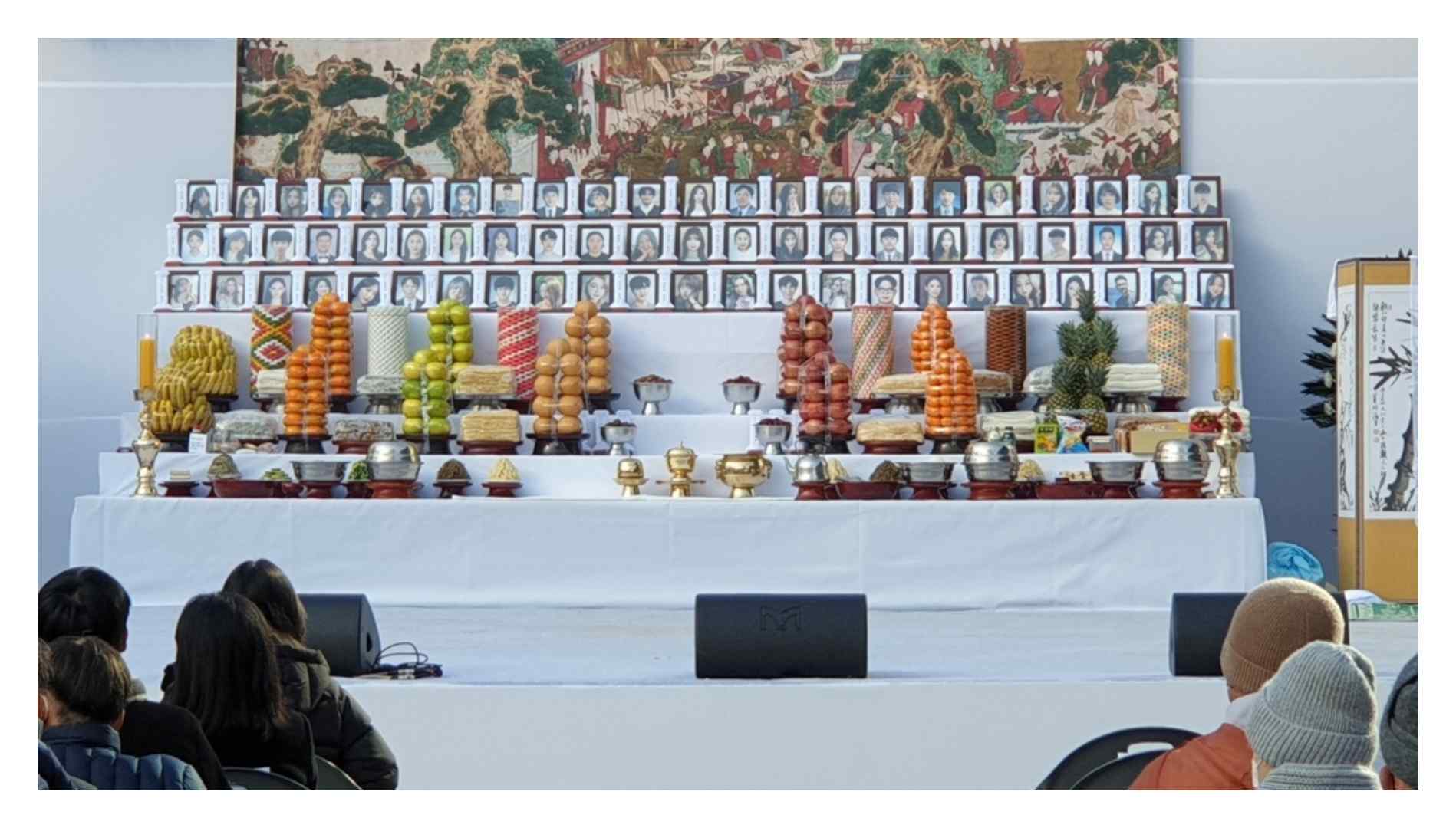 - 1열에는 시접과 밥, 국, 술잔을 지방(신위) 수대로 올려두며, 조상들께 올리는 술잔도 함께 놓습니다.