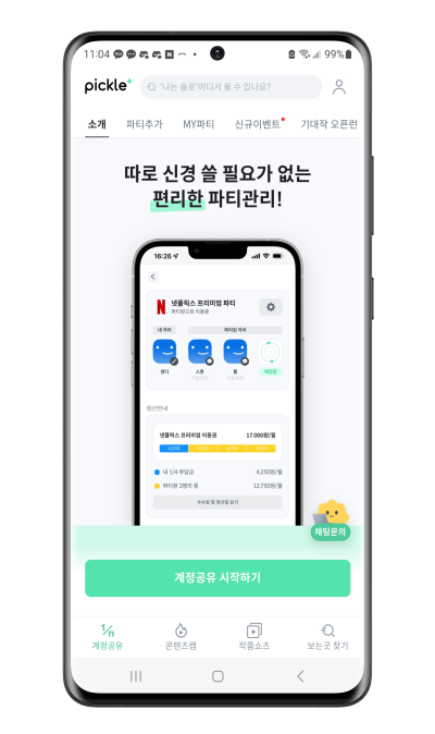 pickleplus는 490원에서 990원의 저렴한 수수료를 내면서 최적의 파티원을 찾아주고, 관리까지 손쉽게 해주는 서비스입니다.