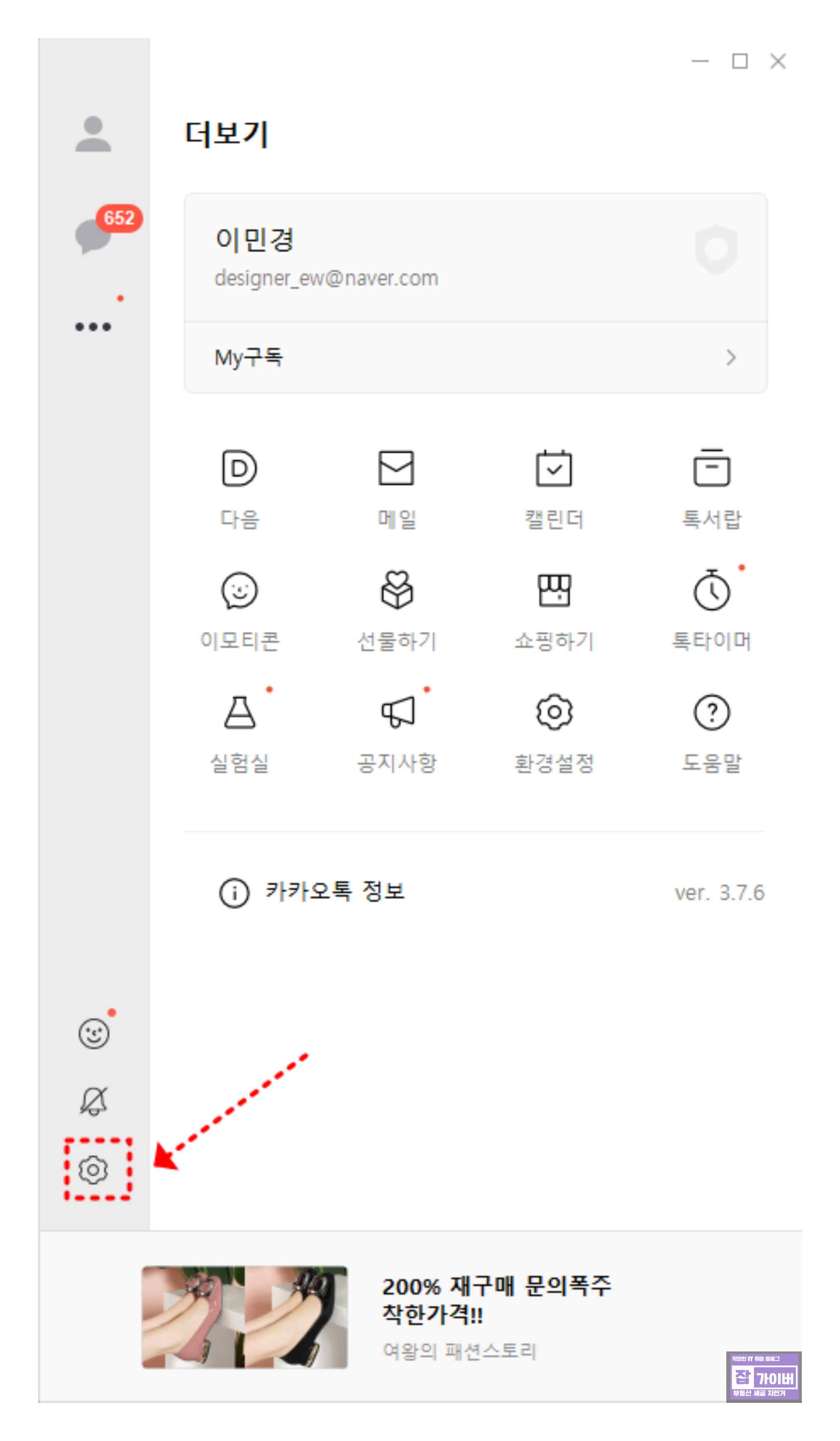 - 더보기 창에서 톱니바퀴 모양의 '환경설정'을 클릭합니다.
