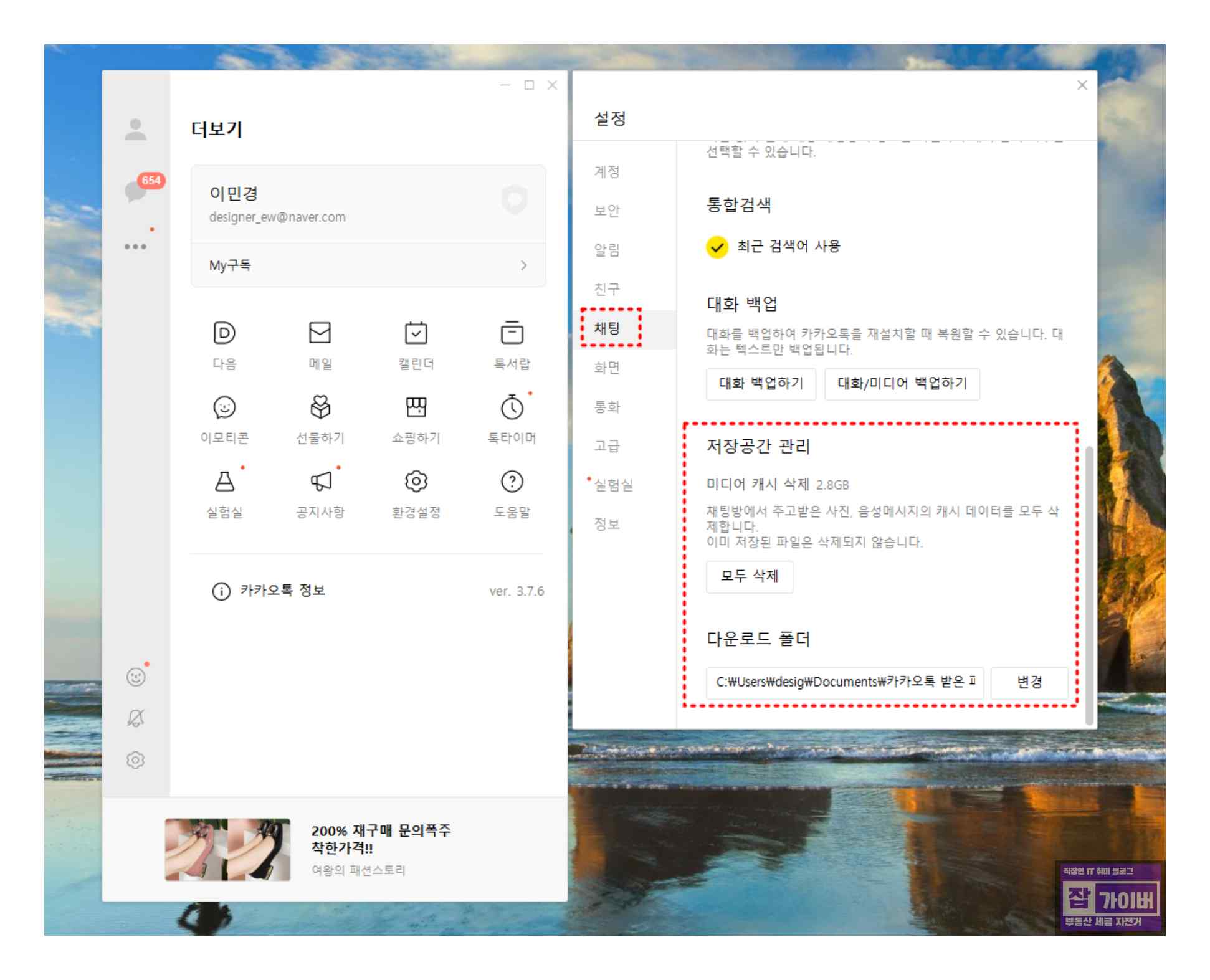 PC 카카오톡 사진 및 동영상 다운로드 저장위치 변경