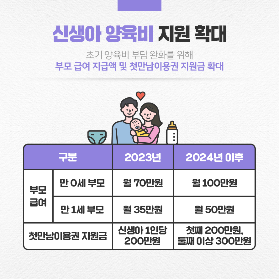 출산 및 육아 시 신생아 부모지원금 종류 별 혜택