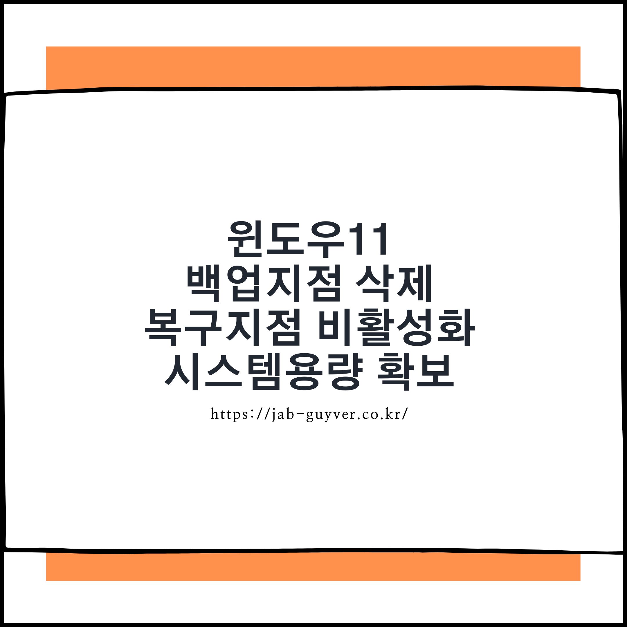 윈도우11 백업지점 삭제 복구지점 비활성화 시스템용량 확보