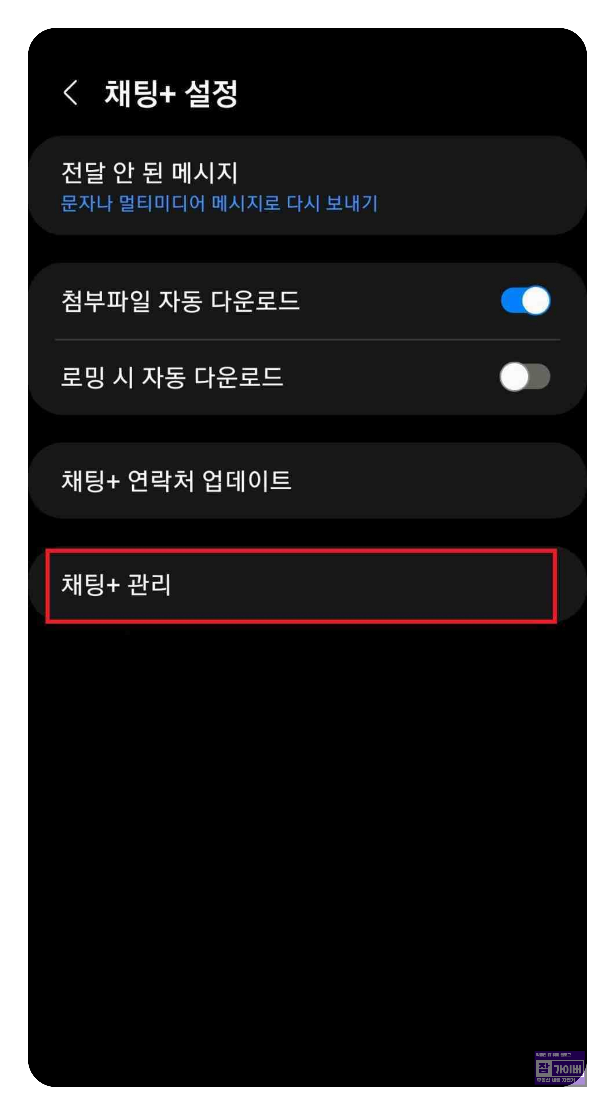 그리고 채팅+설정으로 진입한 후, 채팅+관리를 선택하여 채팅+ 기능을 끄는 작업을 진행합니다.