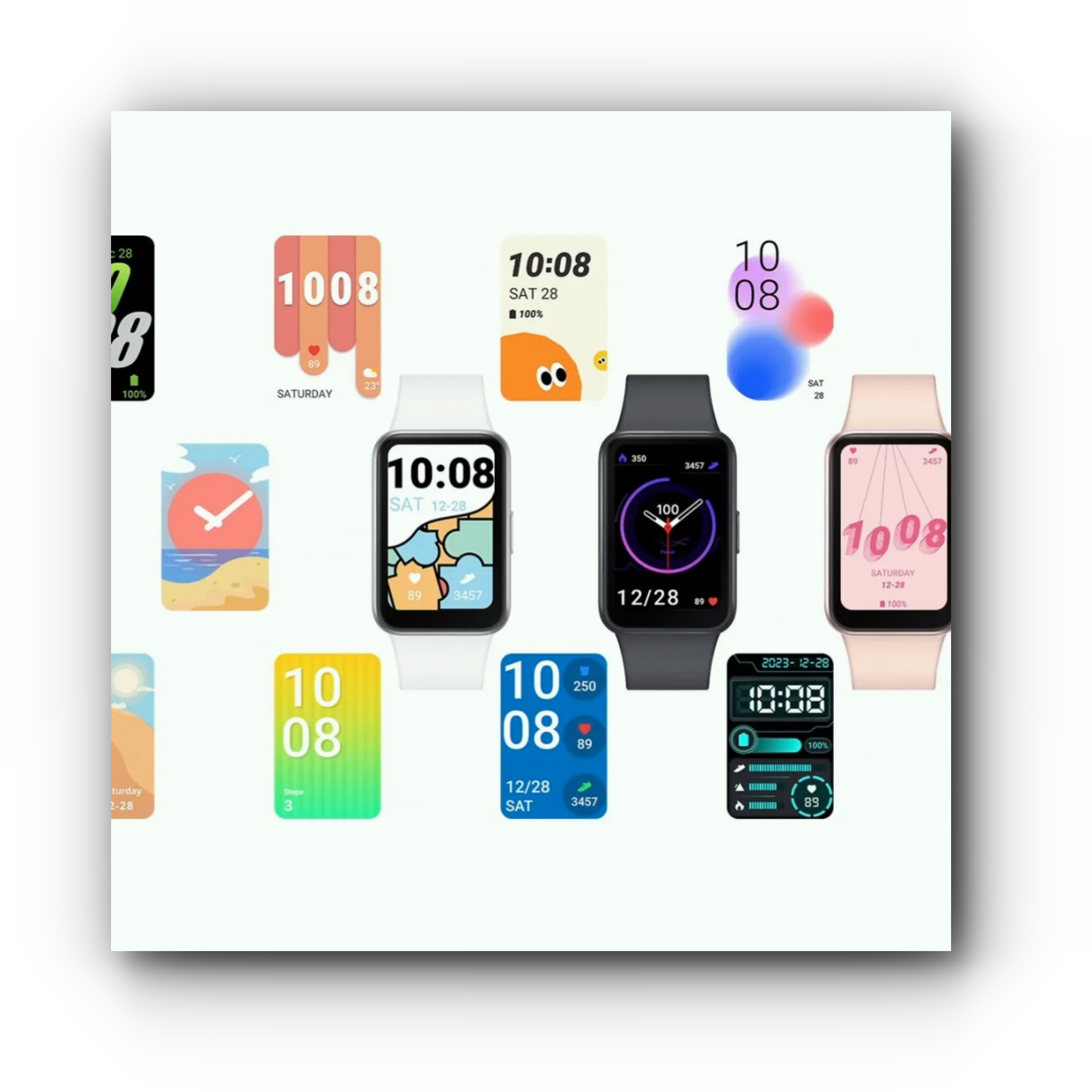 워치 페이스도 전작 대비 훨씬 다양해졌습니다. 저장 공간이 256MB로 늘어나면서, 단색 심플 스타일부터 운동 데이터 위주 레이아웃, 귀여운 캐릭터 스타일까지 취향에 따라 골라 쓰기 좋습니다. 화면이 넓다 보니 알림에서 이모지나 긴 메시지도 조금 더 여유 있게 읽히는 편이고요.