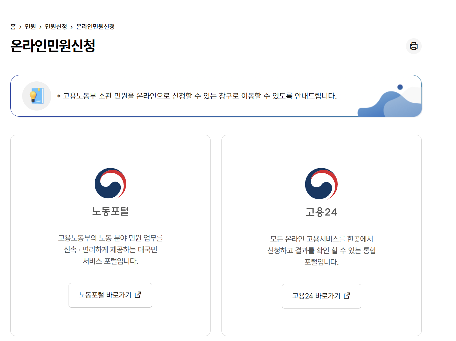- 가까운 고용노동부 고용센터에서 접수 가능