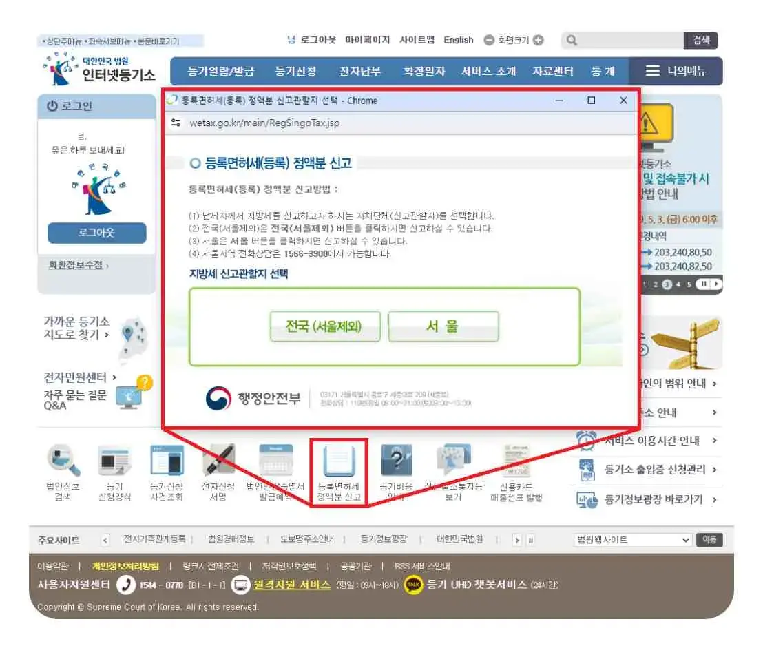 신청서 작성 시, 각종 납부 내역을 입력한 후, 해당 서류들을 첨부하며 이 서류들은 주로 전자파일 형태로 업로드하게 되며, 전자 제출용 등기는 인터넷등기소에서 발급받을 수 있습니다.