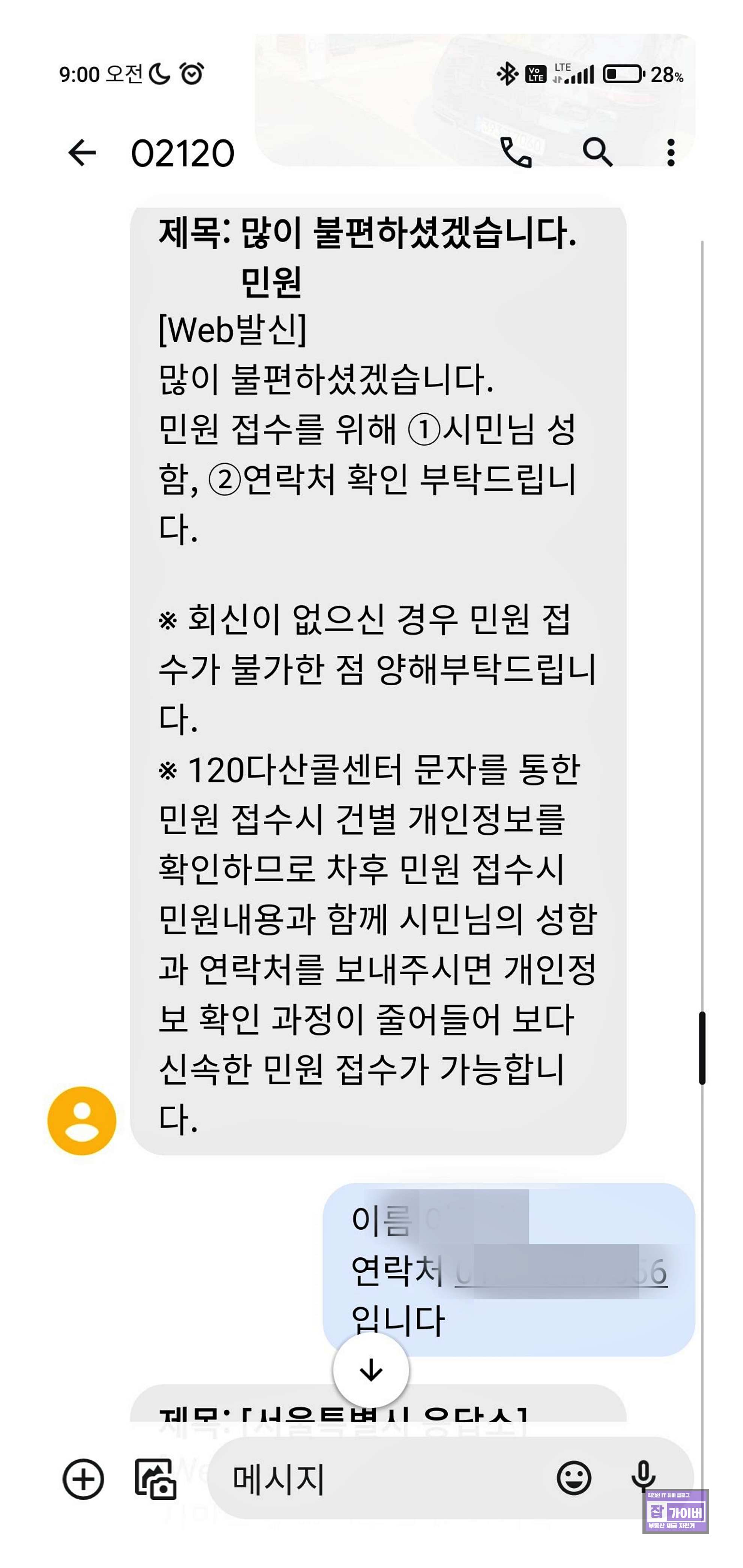 서울 강서구 주차위반 문자 신고방법 및 120 다산 콜센터 후기