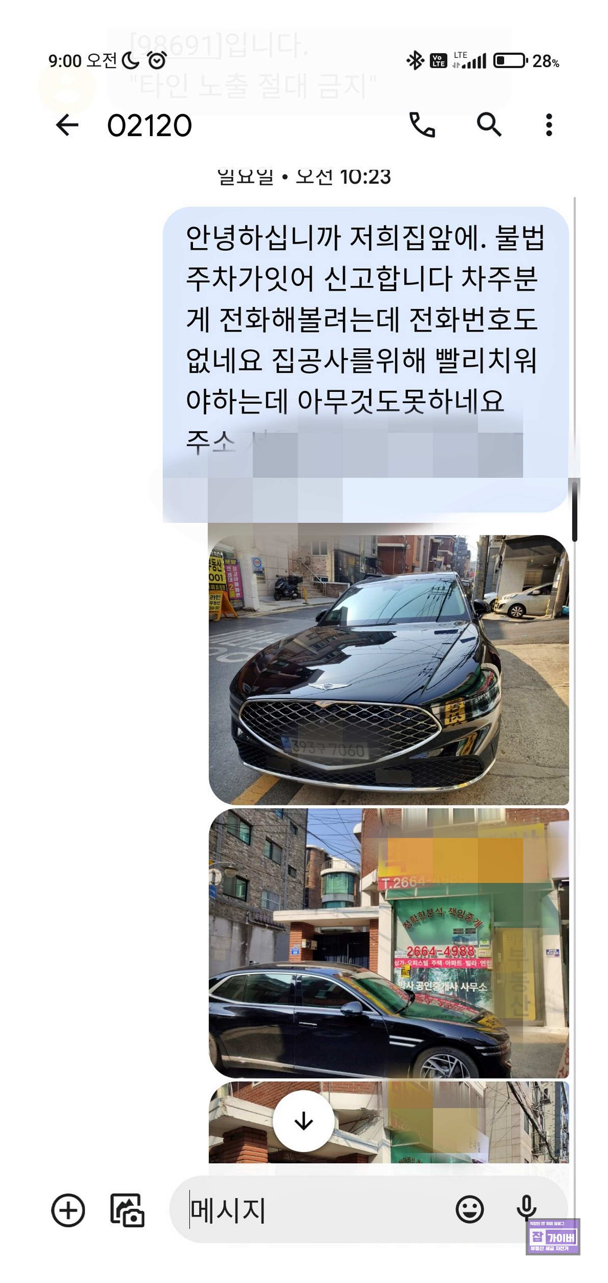 우리 집 앞 마당은 상가 건물과 우리 차량만 주차할 수 있는 공간인데, 옆집이나 뒷집에서 골목 올라가기를 귀찮아해서 자주 주차위반으로 세워놓는 상황이 반복되고 있습니다. 처음에는 그냥 동네 이웃이라서 그냥 내비두었었는데, 이번에는 공사로 차량에 페인트 등이 떨어질 수 있어서 차를 치우라고 연락하려고 했습니다. 그런데 차에 전화번호까지 적어놓았더군요.