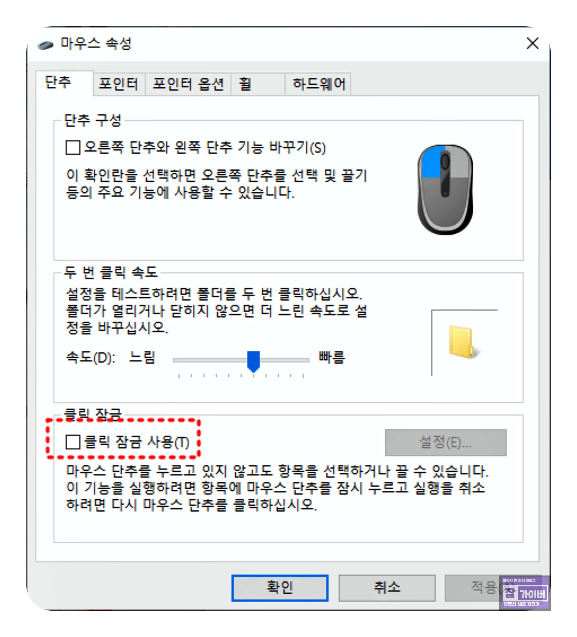 이상 마우스가 움직인다는 가정하에 유용한 설정 방법으로서 만약 마우스가 움직이지 않는다면 USB 연결상태부터 블루투스 연결상태 등 여러 측면을 점검해야 합니다.
