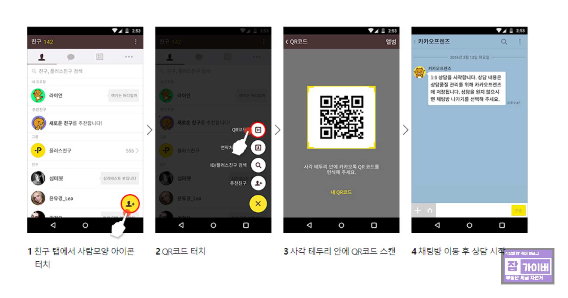 2. 스마트폰에서 카카오톡을 실행하고 스캔 아이콘을 눌러 코드스캔 화면을 엽니다.