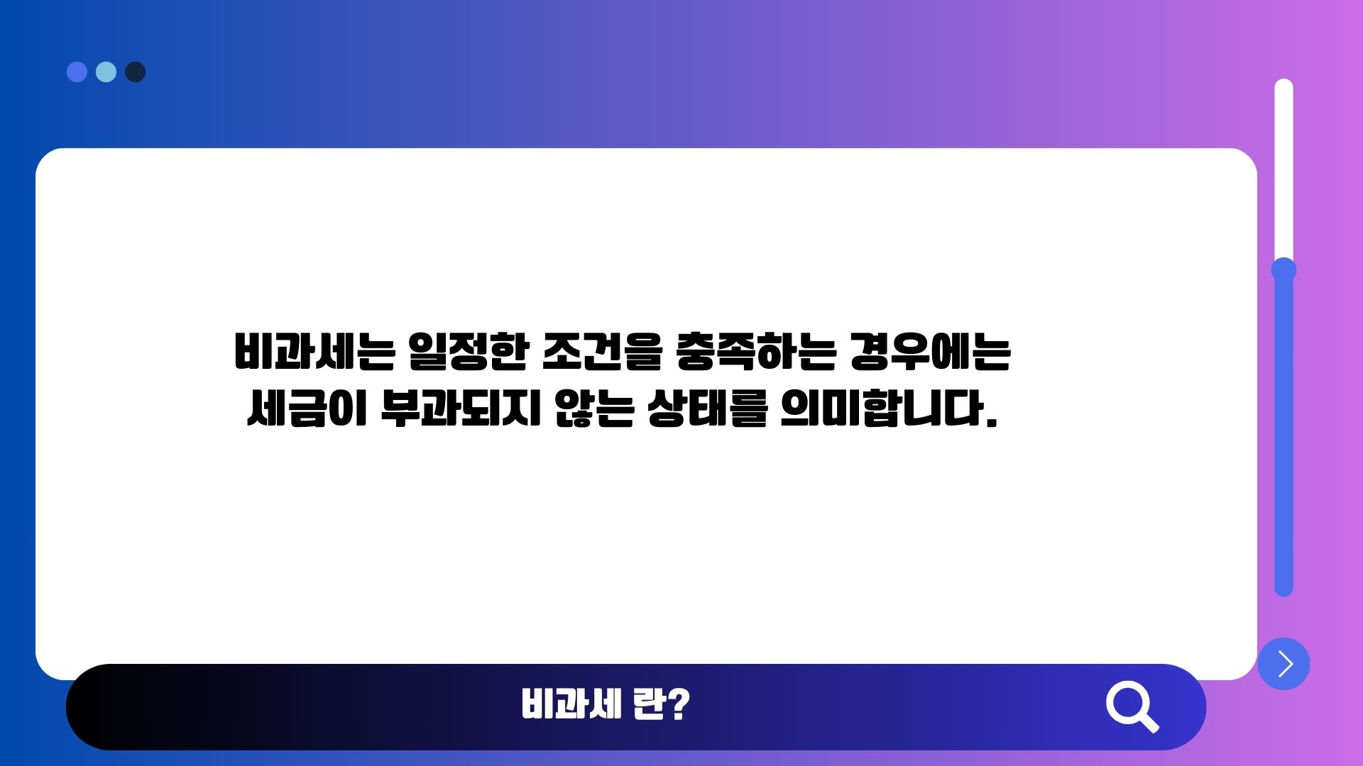 비과세는 일정한 조건을 충족하는 경우에는 세금이 부과되지 않는 상태를 의미합니다. 이는 일반적으로 정부나 관련 기관이 정한 특정한 조건을 충족하는 경우에만 해당됩니다. 예를 들어, 국가에서 특정 분야에 투자하거나 특정 조건을 만족하는 경우 등이 비과세 혜택을 받을 수 있는 조건으로 볼 수 있습니다.