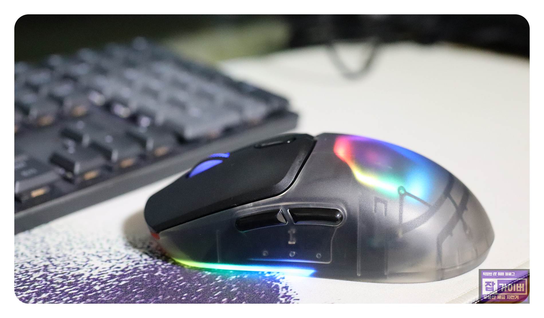 실제로 제품을 받아 개봉해보면, 홍보 사진보다 실물이 더욱 고급스러워 보이고 마우스 위의 앱코 라이트닝은 은은하게 빛나며, 그 세련된 디자인은 더욱 멋진 느낌을 줍니다.