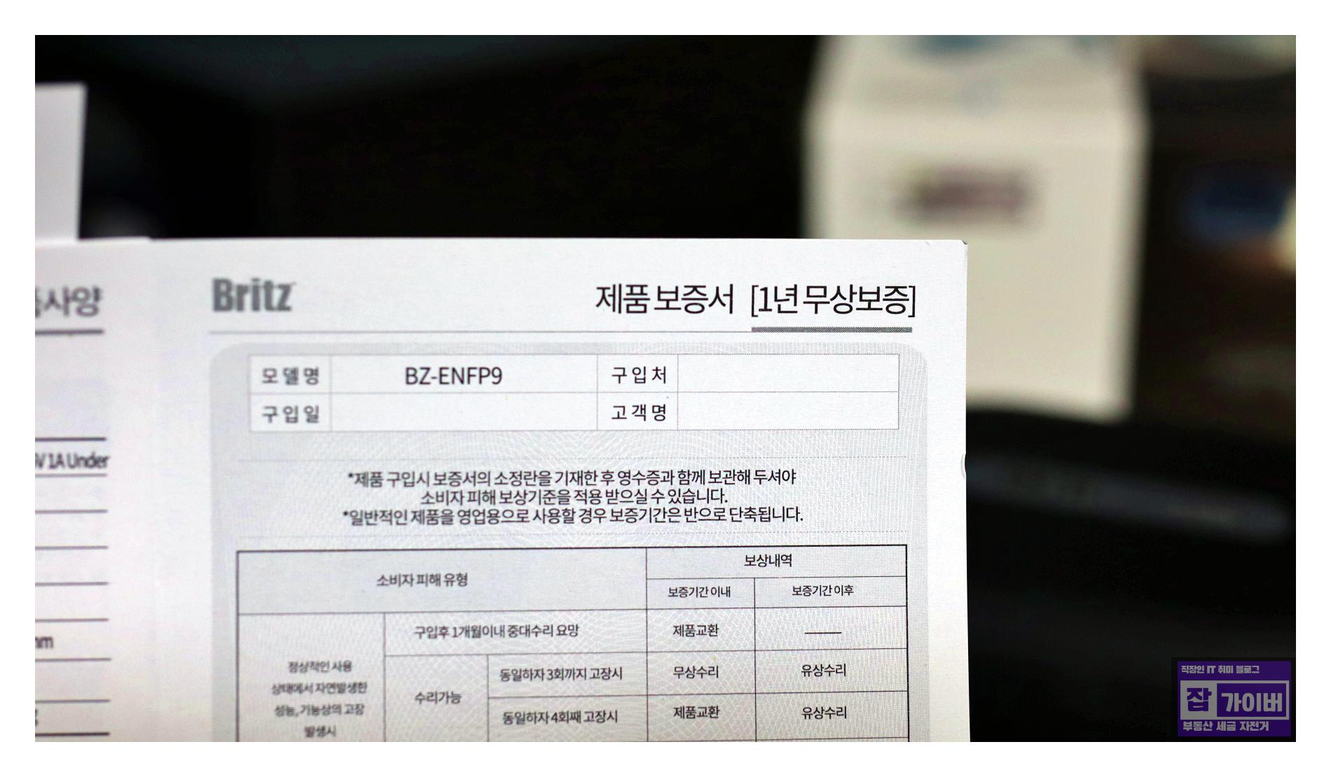 1년 무상보증 제품보증서 - BRITZ