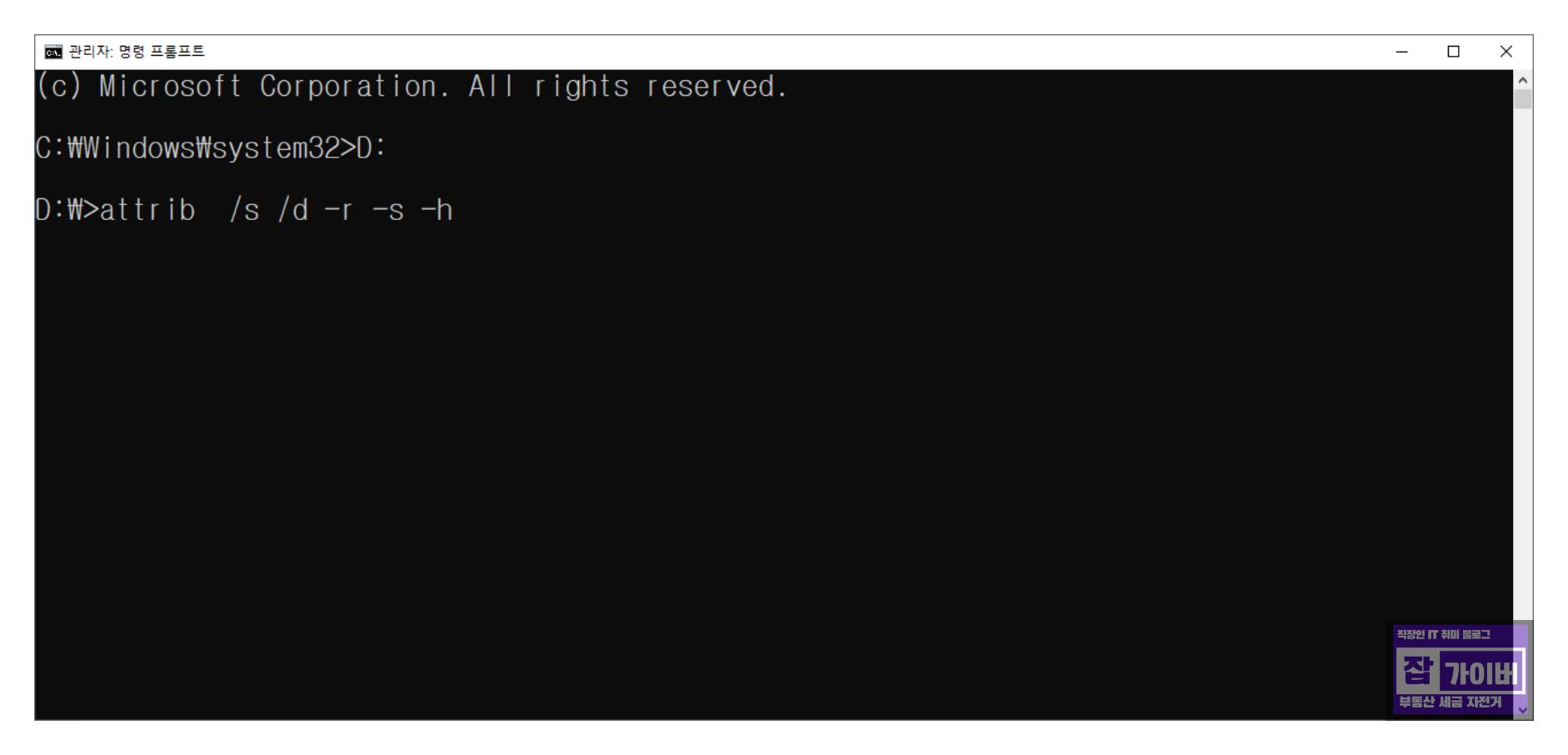 그리고 위 명령어는 파일과 폴더의 시스템 속성을 초기화하여 원래대로 복구시킬 수 있습니다.