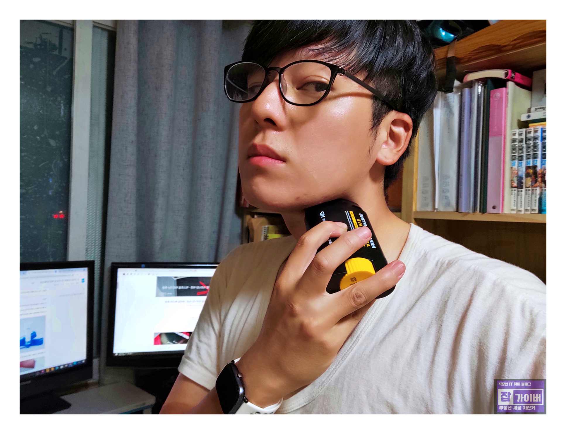 남자분들이라면 면도 후에도 사용 가능한 이 제품은 특히 쿨링 마사지 효과가 뛰어나며, 에어컨이 없는 상황에서도 휴대하여 사용할 수 있어 졸음방지에도 좋습니다.