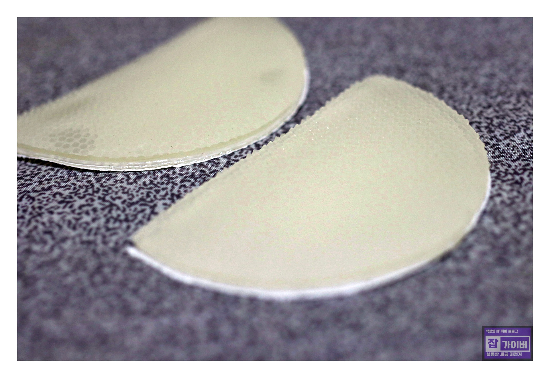 제품 구성품으로는 신발 뒷꿈치 패드 2개, 접착증진제 프림어 2개, 알콜스왑 2개가 포함되어 있으며 뒷굼치 패드 부착방법은 간단하여 누구나 손쉽게 적용할 수 있었습니다.