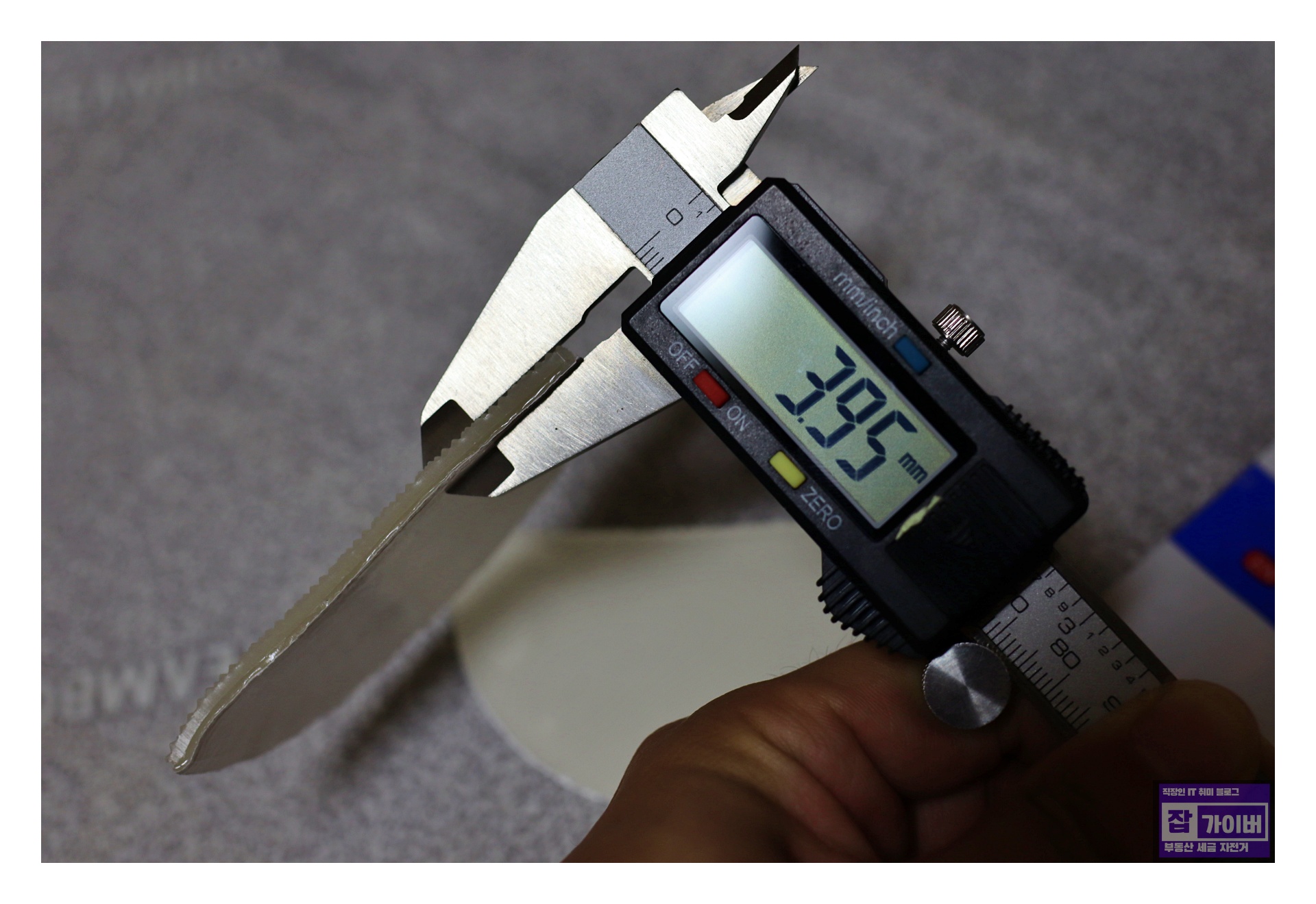 뒷꿈치 패드는 3.95mm로 약 4mm의 두께를 자랑하며 푹신한 소재로 만들어져 있습니다.