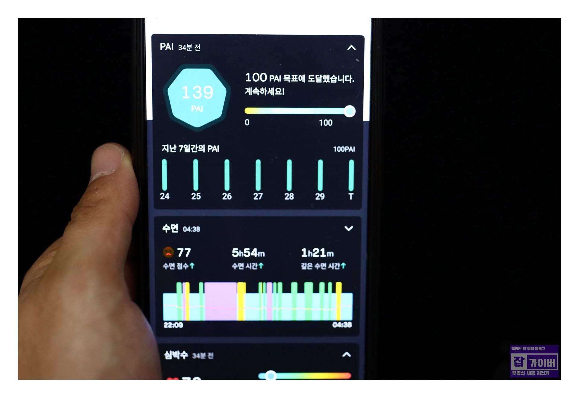 물론, 손목에 측정하는 만큼 심박수 측정이 완벽하게 정확하지는 않지만, 생각보다 정확한 측정 결과를 제공하였습니다.