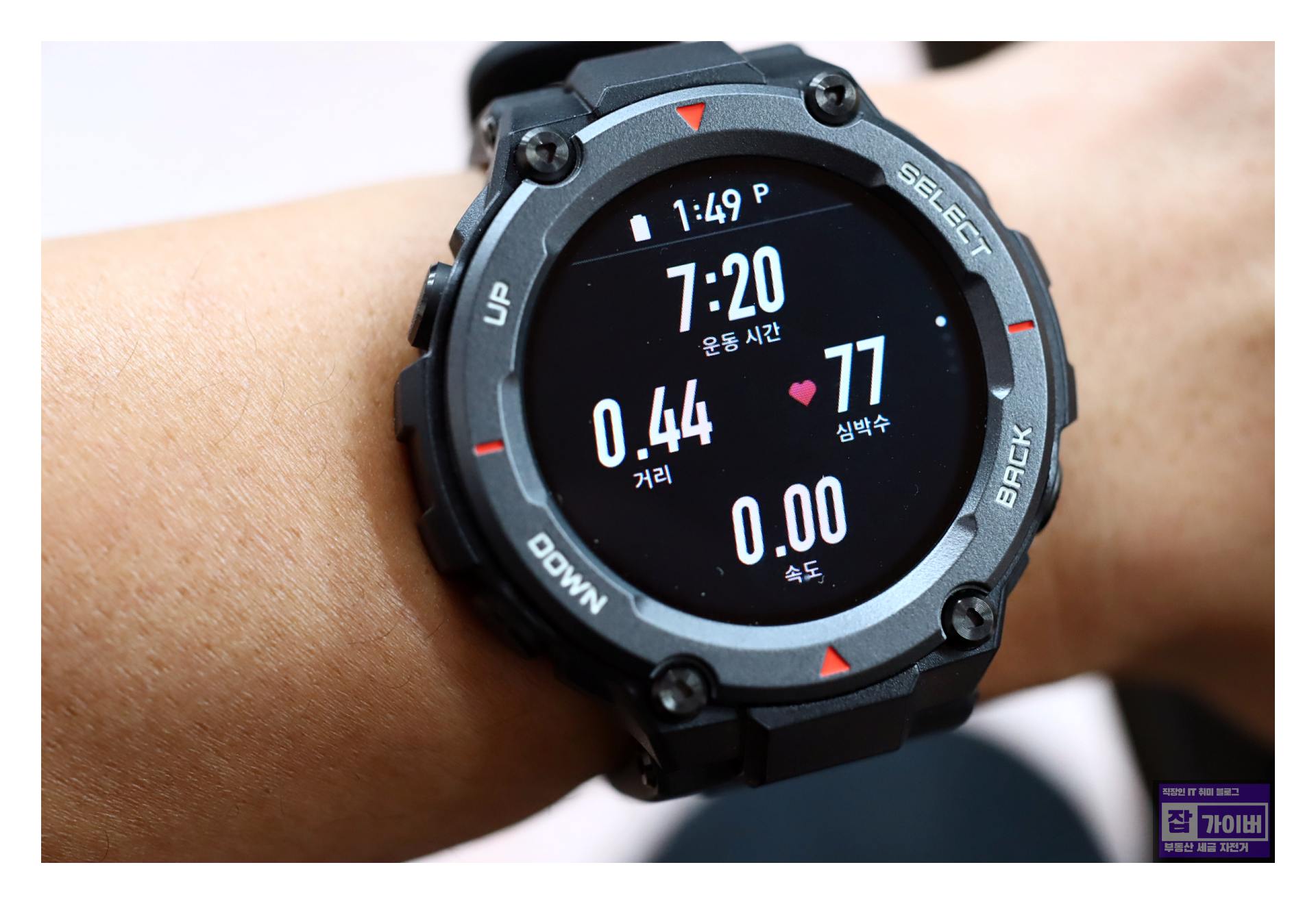 그럼 우선 제품에 대해 알아보도록 하겠습니다. 새롭게 출시된 샤오미 어메이즈핏 티렉스 프로는 기존 모델과 비슷한 소프트웨어 스펙을 가지고 있지만, 하드웨어 성능이 뛰어나기 때문에 버벅거림이 많이 줄었습니다. 이로 인해 디스플레이의 시각적 요소가 직관적으로 변환되었습니다.