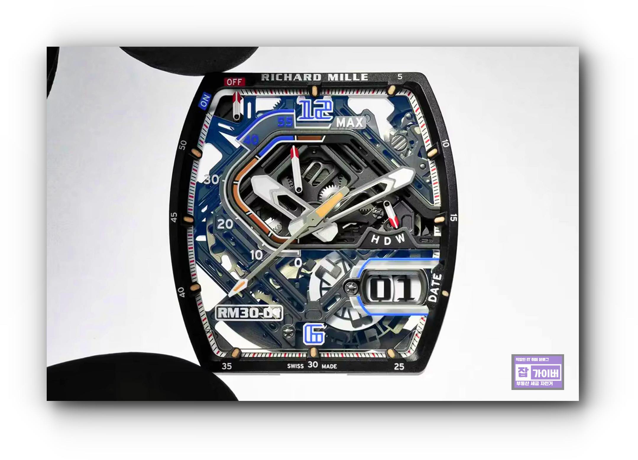 리차드 밀의 rm30-01 디자인은 F1 레이싱 카에서 영감을 받은 특징적인 디자인을 가지고 있습니다.