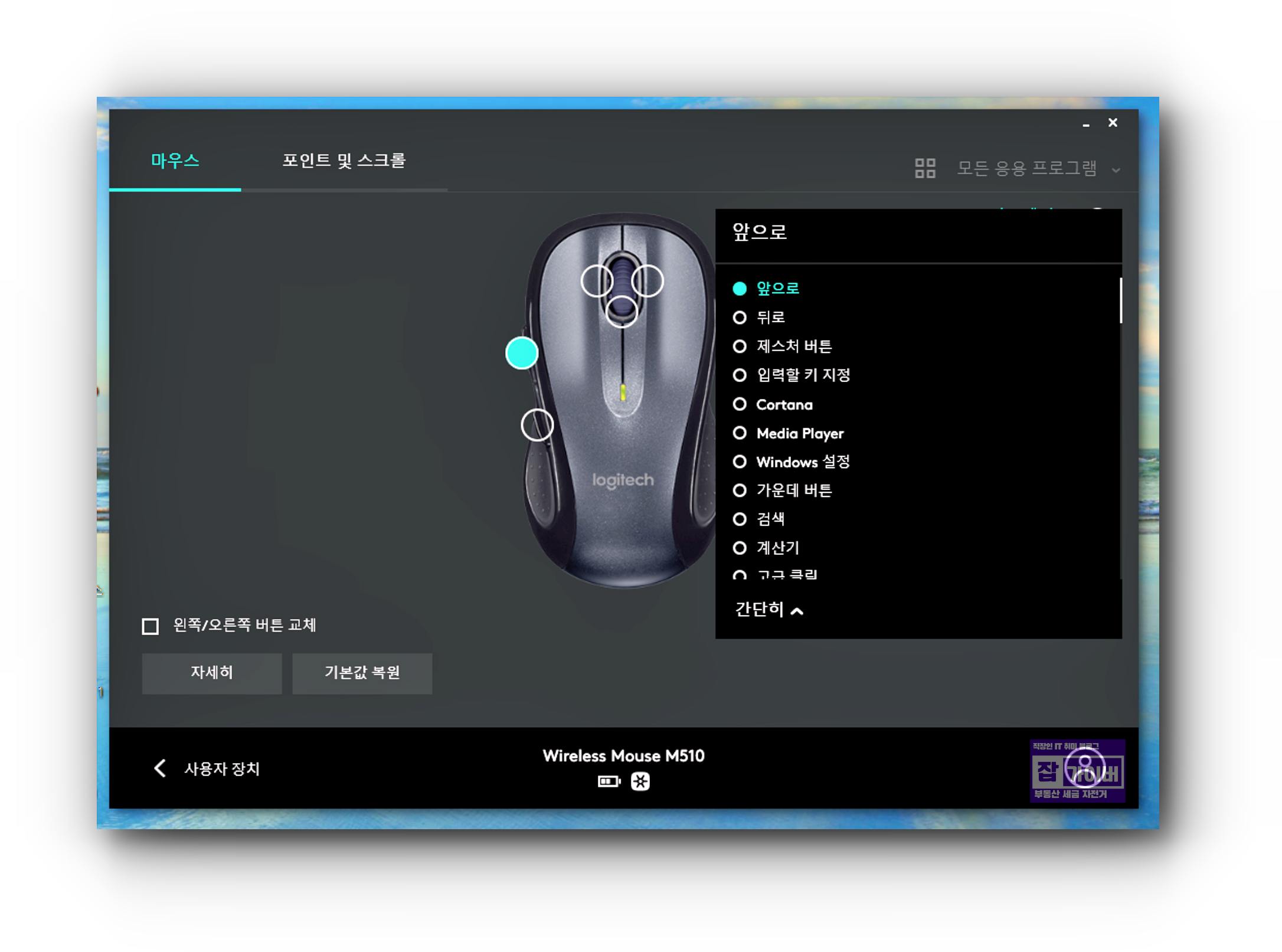 로지텍 키보드 및 마우스 단축키 설정