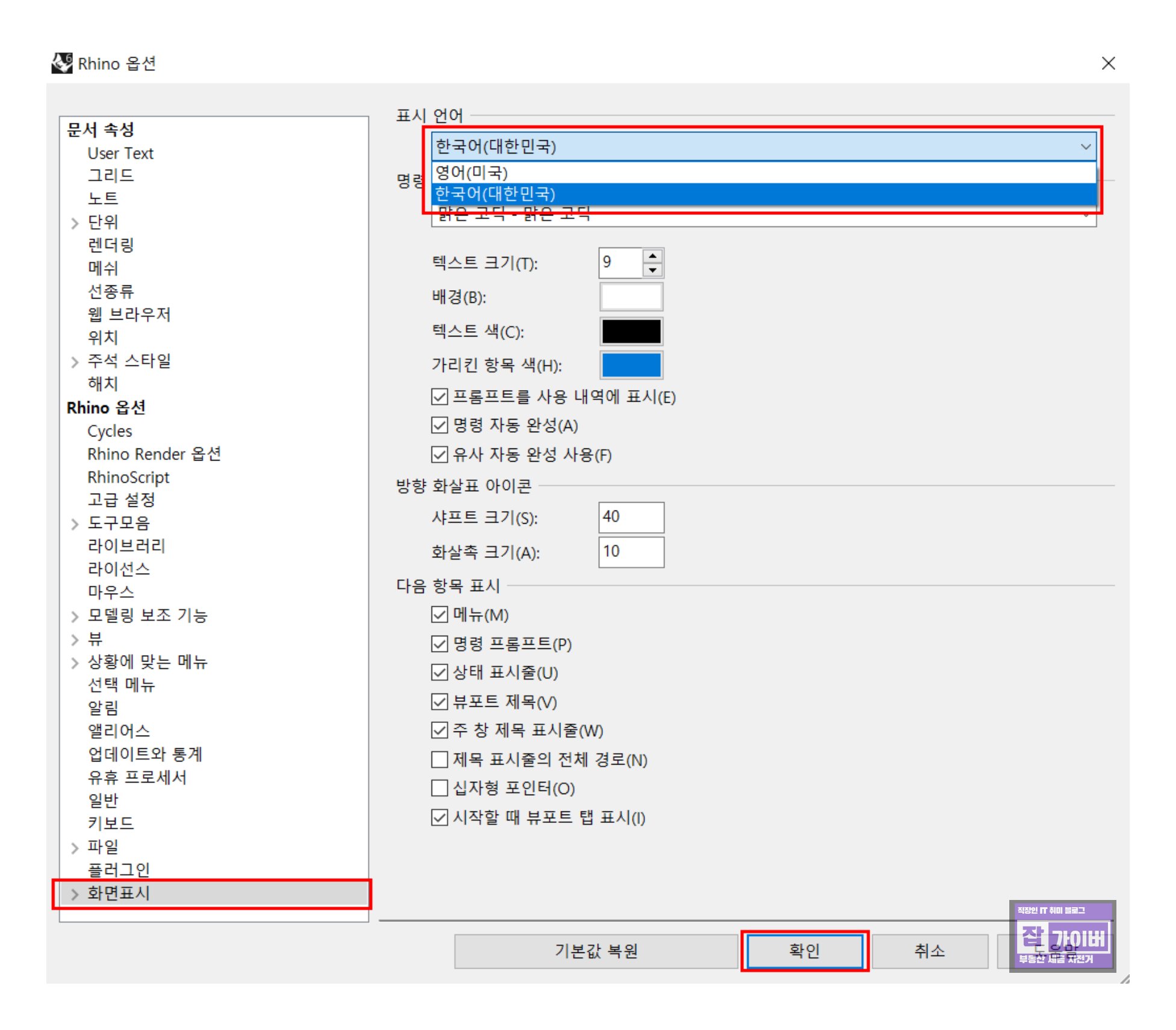 라이노3D 영어 한글로 언어변경 및 설정방법