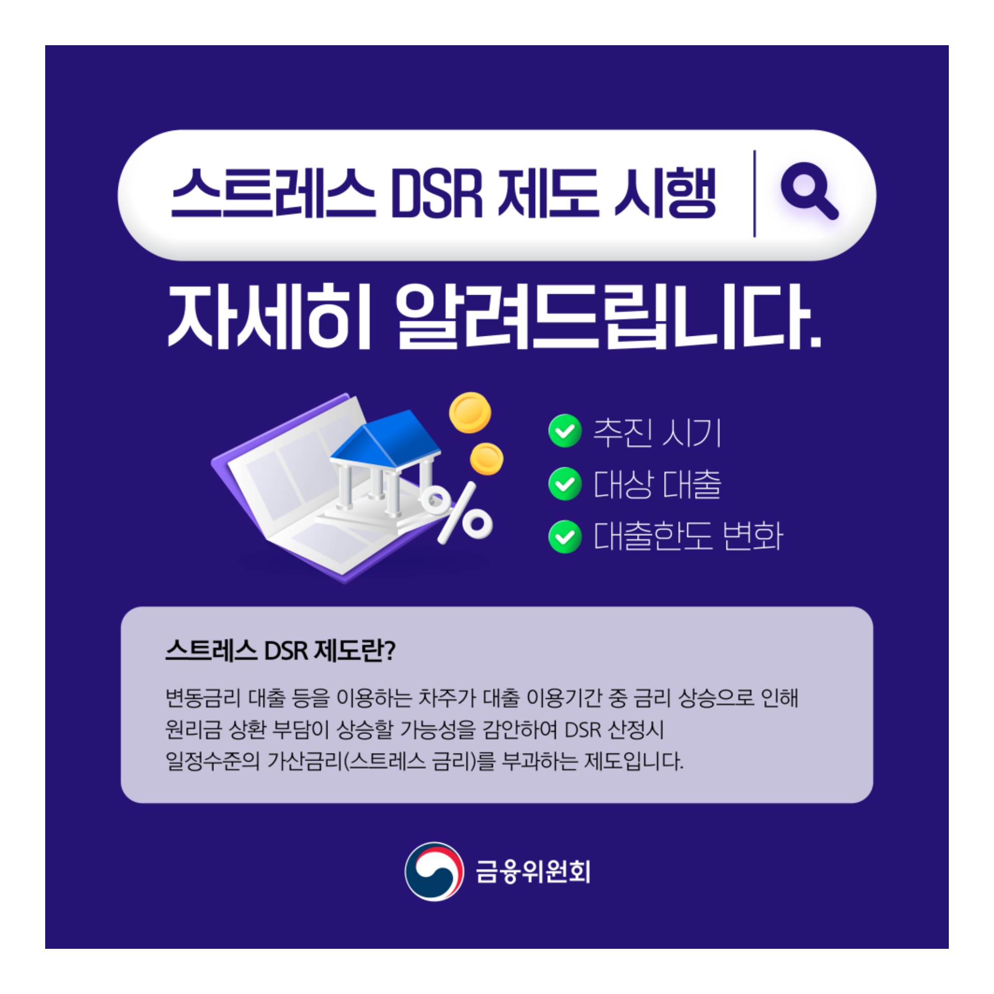 이는 기존 DSR(총부채원리금상환비율) 규제에 미래의 금리변동 위험을 '스트레스(가산) 금리'로 반영해 대출한도를 낮추는 조치로, 차주별로 내년까지 최대 '연봉'만큼의 대출한도가 줄어들 것으로 전망됩니다.