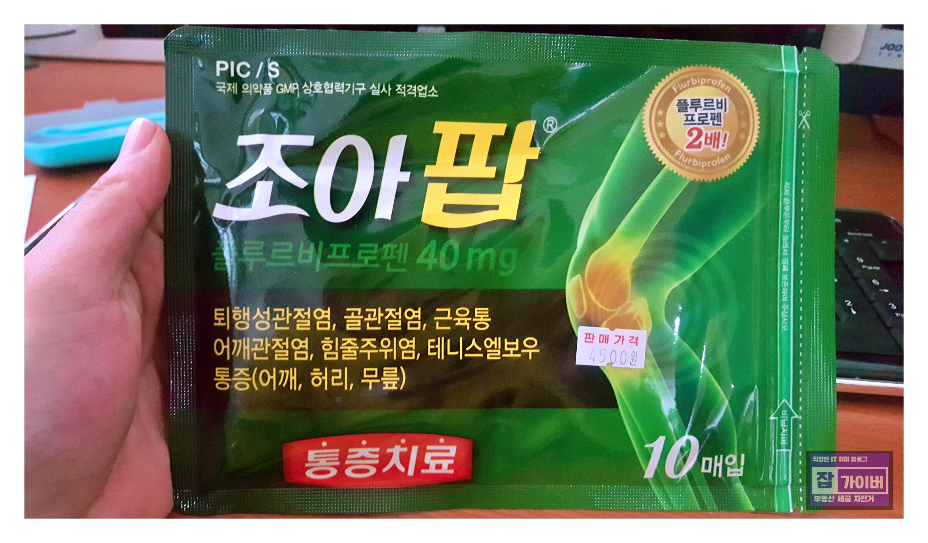 | 조아팝 파스 | 근육통, 관절염, 염증 완화 | 약국 | 4,000원 ~ 6,000원 |