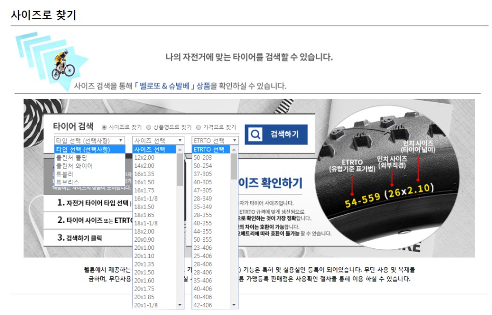 이때 주의해야 할 사이즈로는 16인치와 20인치가 존재하며, 16인치는 ETRTO의 305와 349mm가 있고, 20인치는 ETRTO의 406과 451mm가 있습니다.