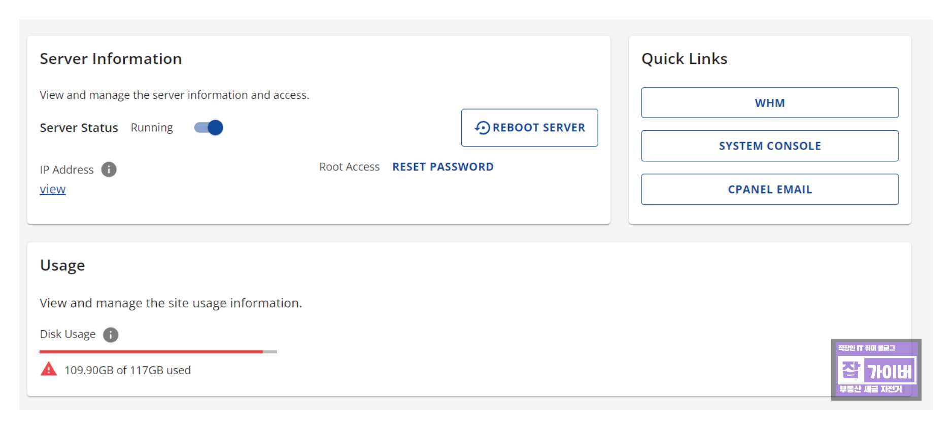 우선 Quick Links 에서 WHM을 통해 접속합니다.