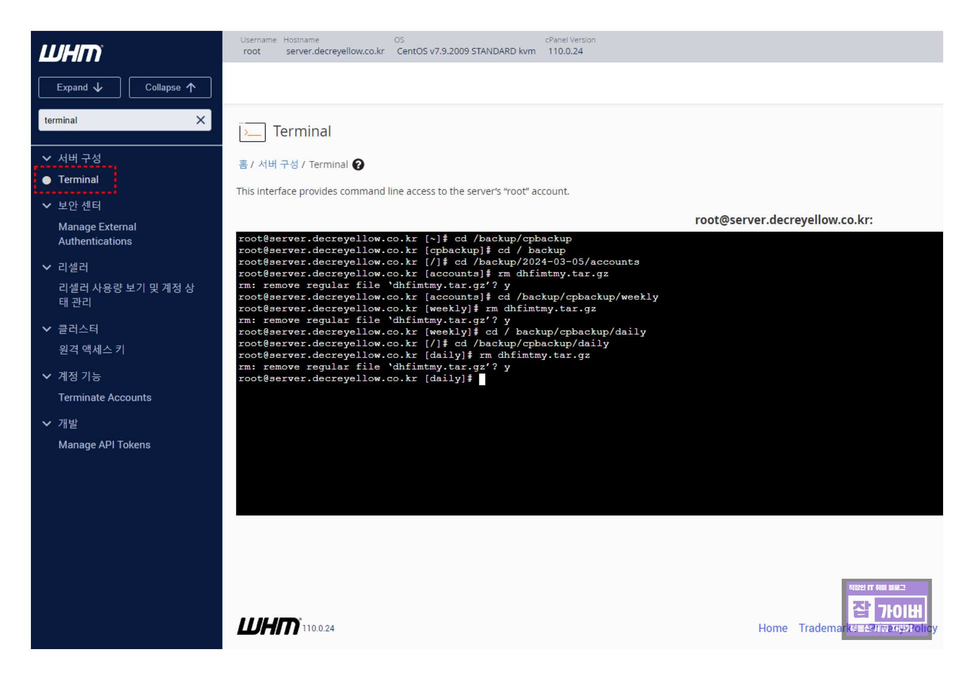 매일 자동백업 경로: cd /backup/cpbackup/daily