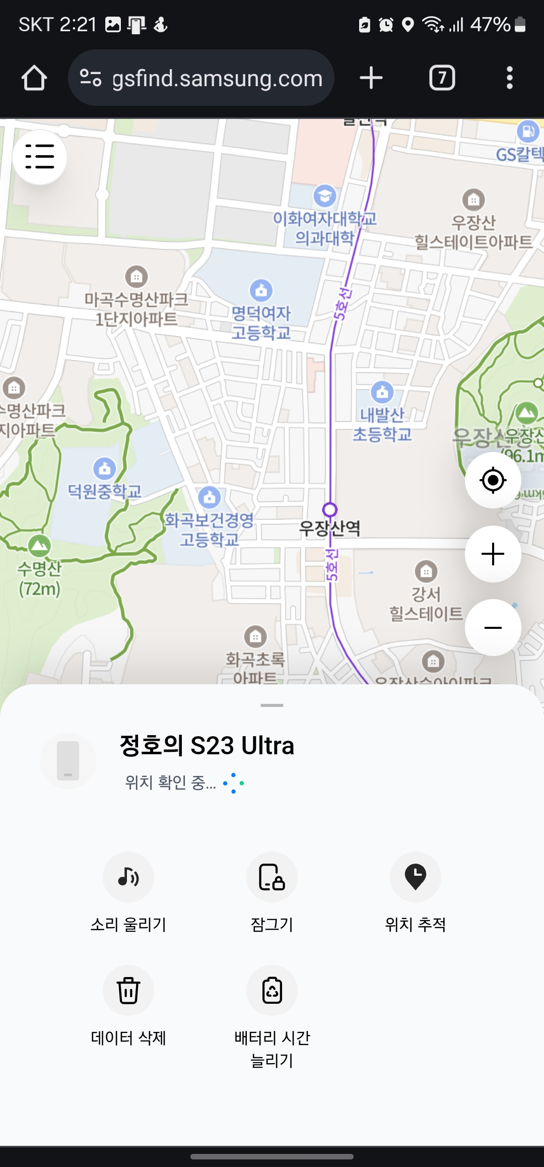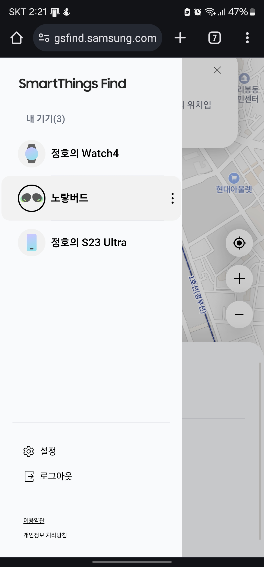 완전히 전원이 꺼진 상태에서는 위치 확인이 어렵지만, SmartThings Find는 마지막으로 감지된 위치를 기록해 두기 때문에 가장 마지막 연결된 장소를 지도에서 확인할 수 있습니다.