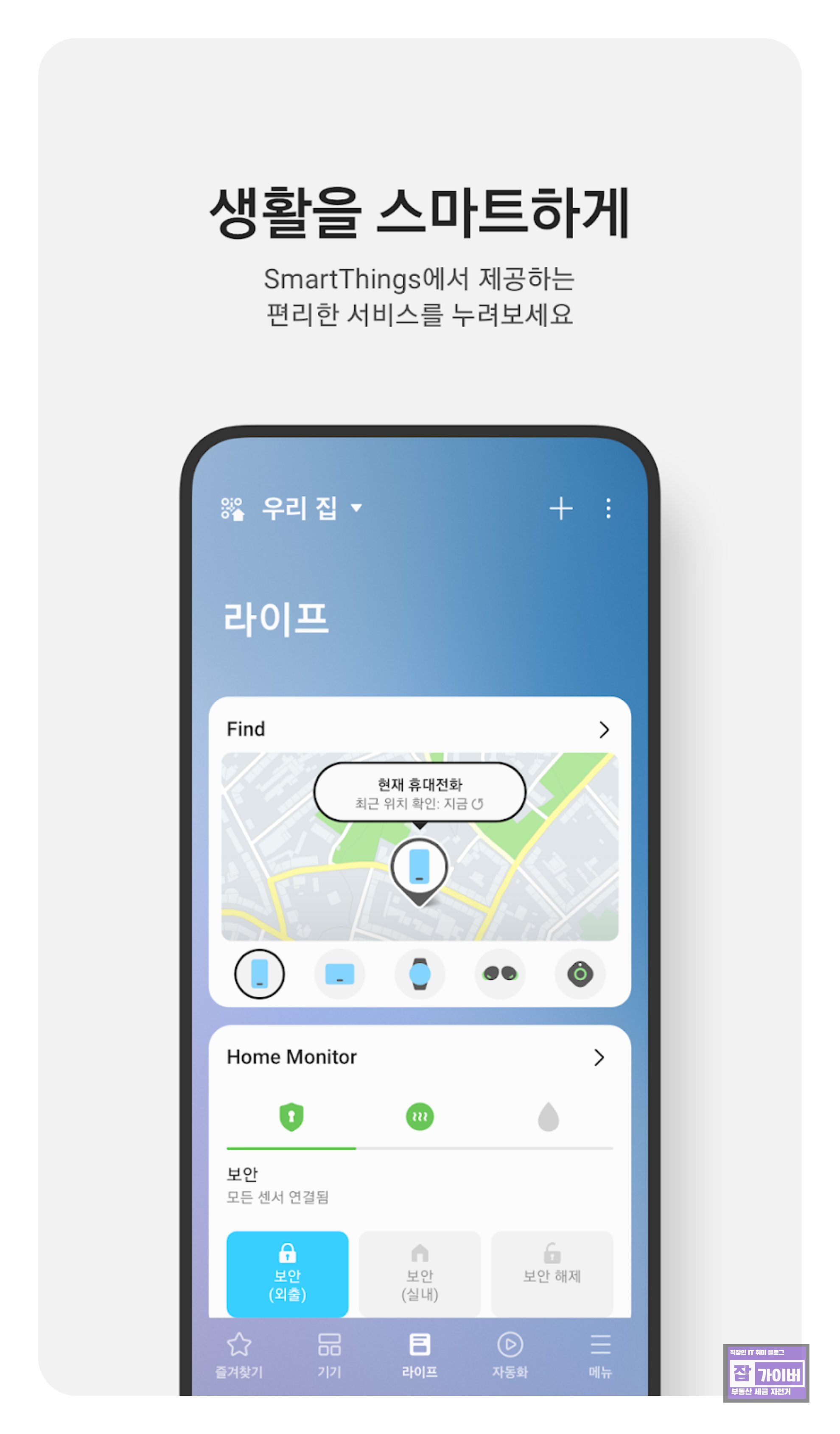 • SmartThings 앱의 지도 위치와 소리 울리기를 병행하면 효과적입니다.