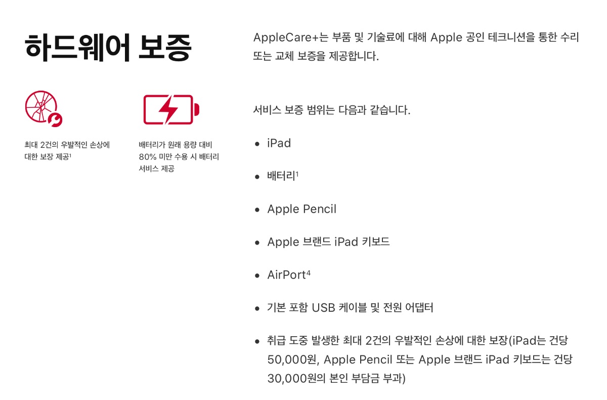 - 애플케어+는 가입 국가 기준, 국내 적용 여부는 애플 고객센터 확인 필수