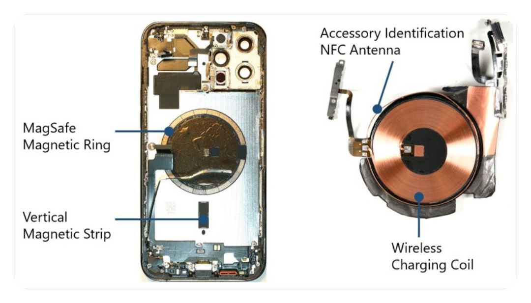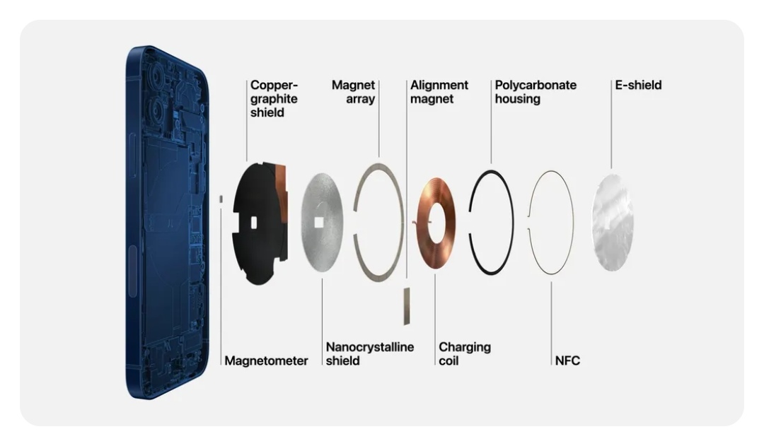맥세이프의 기본원리는 아이폰의 무선 충전 코일 주변에 자석이 배치되어, 기기와 충전기가 자력으로 접속되는 방식으로서 선 없이 편리하게 충전할 수 있고, 충전 중에도 기기를 자유롭게 사용할 수 있어요. 또한 맥세이프는 보조 배터리, 거치대, 카드 지갑 등 다양한 액세서리와도 연동됩니다.