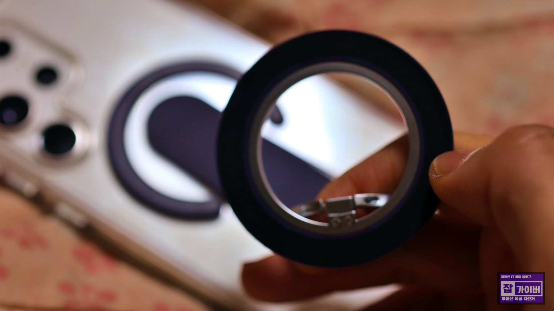 이렇게 붙히고나니 무선충전기에 맥세이프 핑거그립을 껴도되고