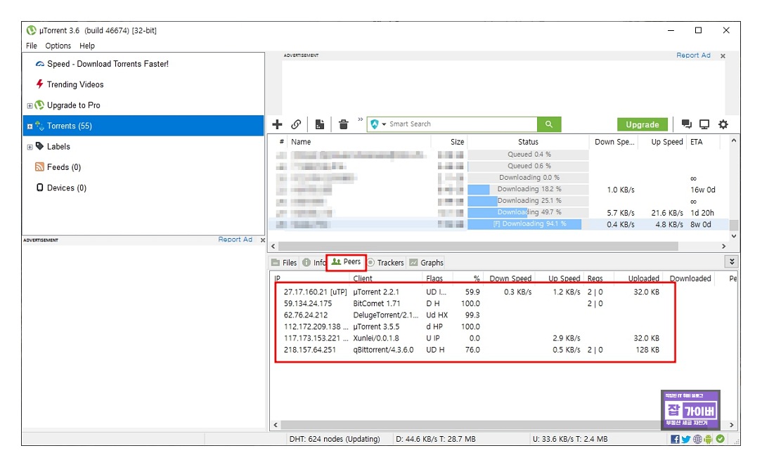 토렌트 피어 접속 중 다운로드 안될 때 해결방법