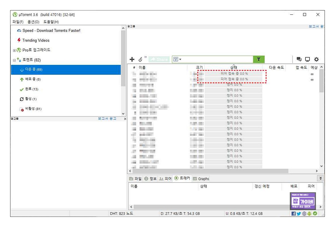 토렌트 피어 접속 중 다운로드 안될 때 해결방법