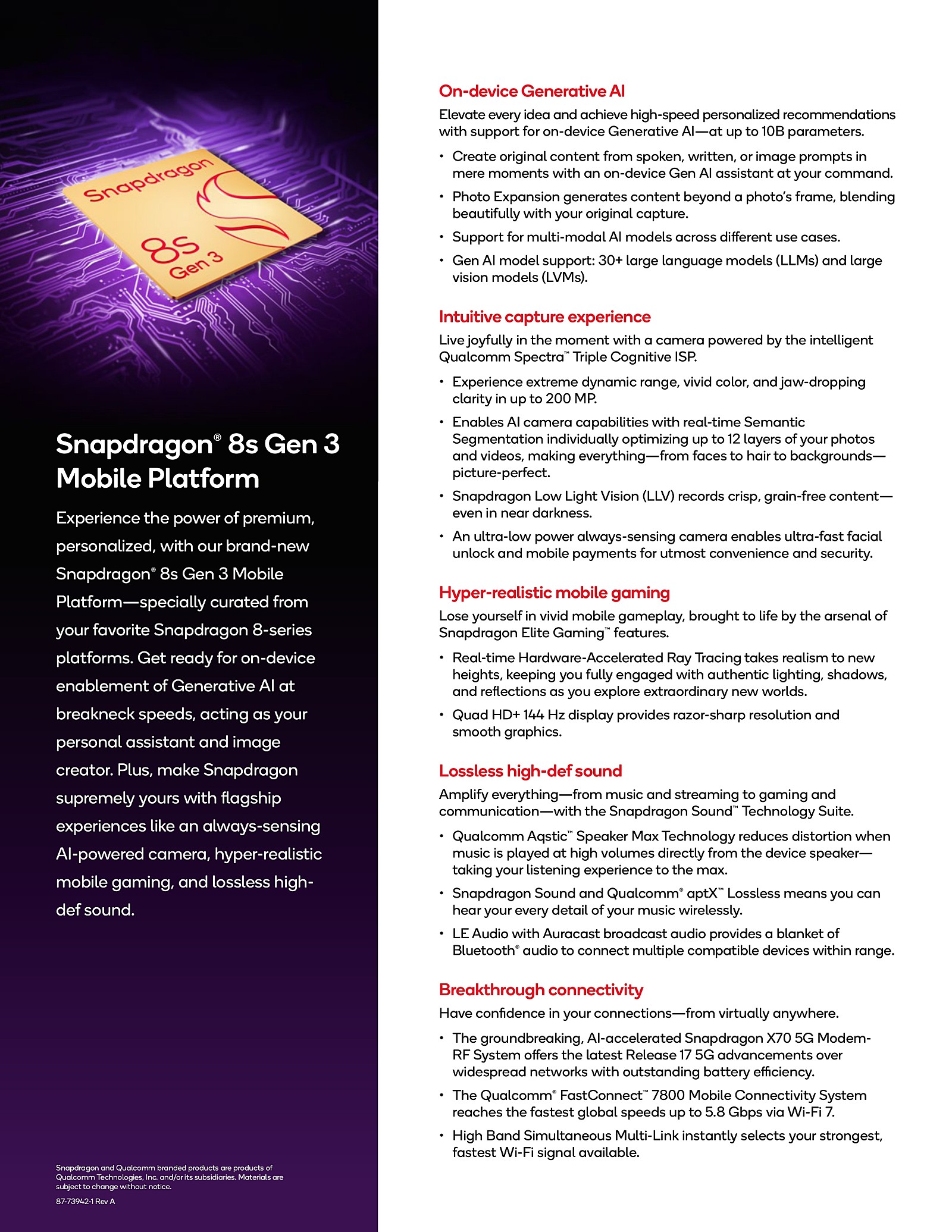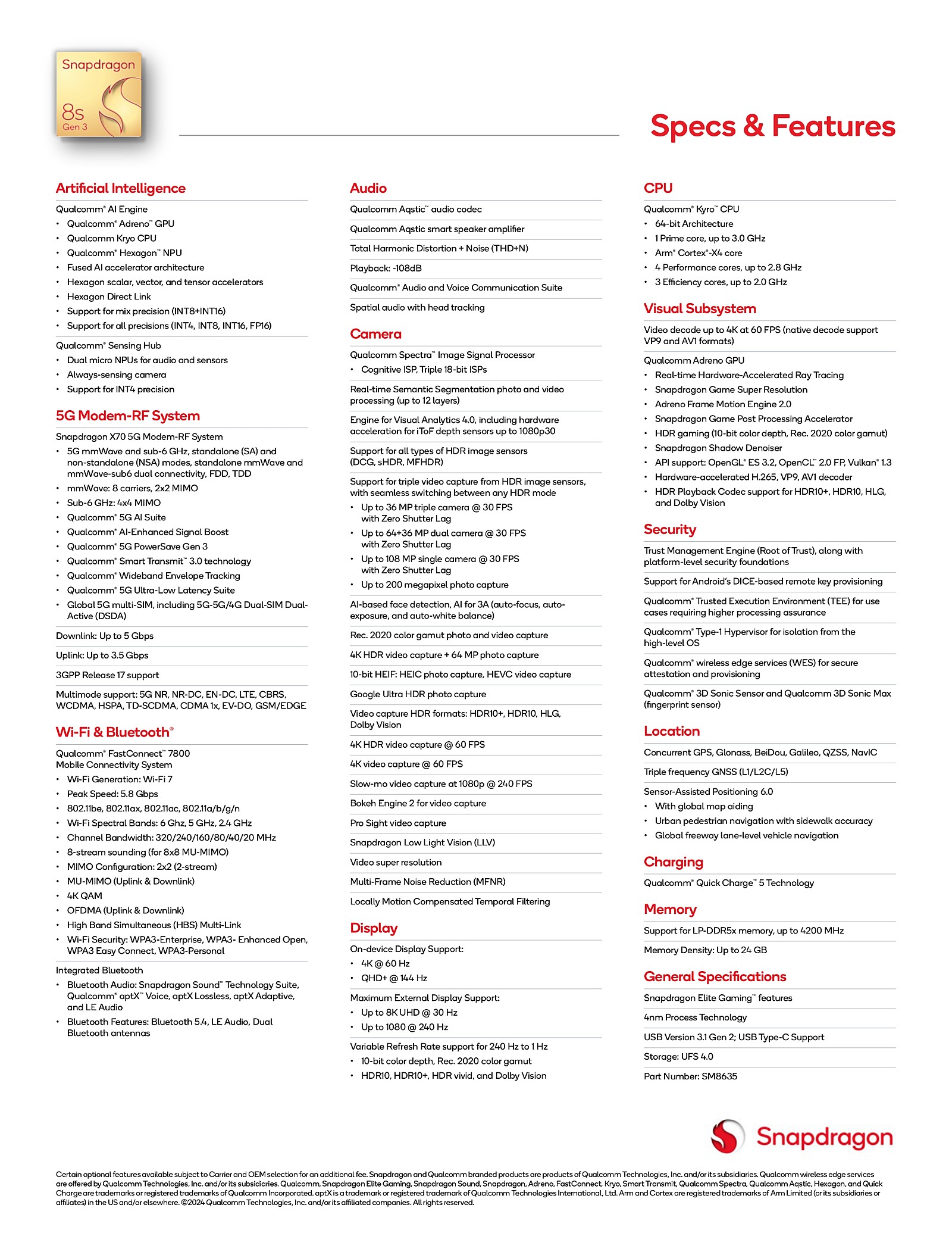 특히, 최신 퀄컴 스냅드래곤 8s Gen 3 (TSMC N4P) 프로세서를 탑재하여 성능 면에서 큰 기대를 모으고 있습니다.