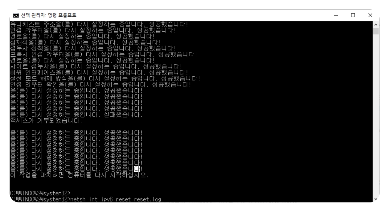 관리자 권한으로 명령 프롬프트를 실행한 뒤 아래 명령어를 순서대로 입력하세요.