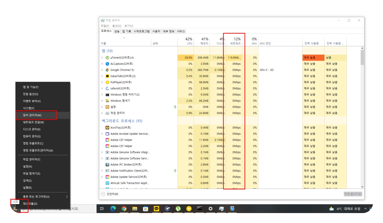 3. 작업 관리자 확인 및 불필요한 프로그램 종료