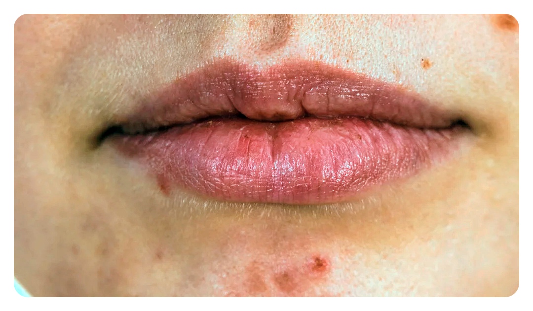 입술에 립스틱 등의 자극 물질이나 알레르기 유발물질이 닿으면 접촉입술염이 발생할 수 있습니다. 이 경우, 첩보검사를 통해 알레르기 반응을 확인하고 해당 물질을 피하는 것이 중요합니다.