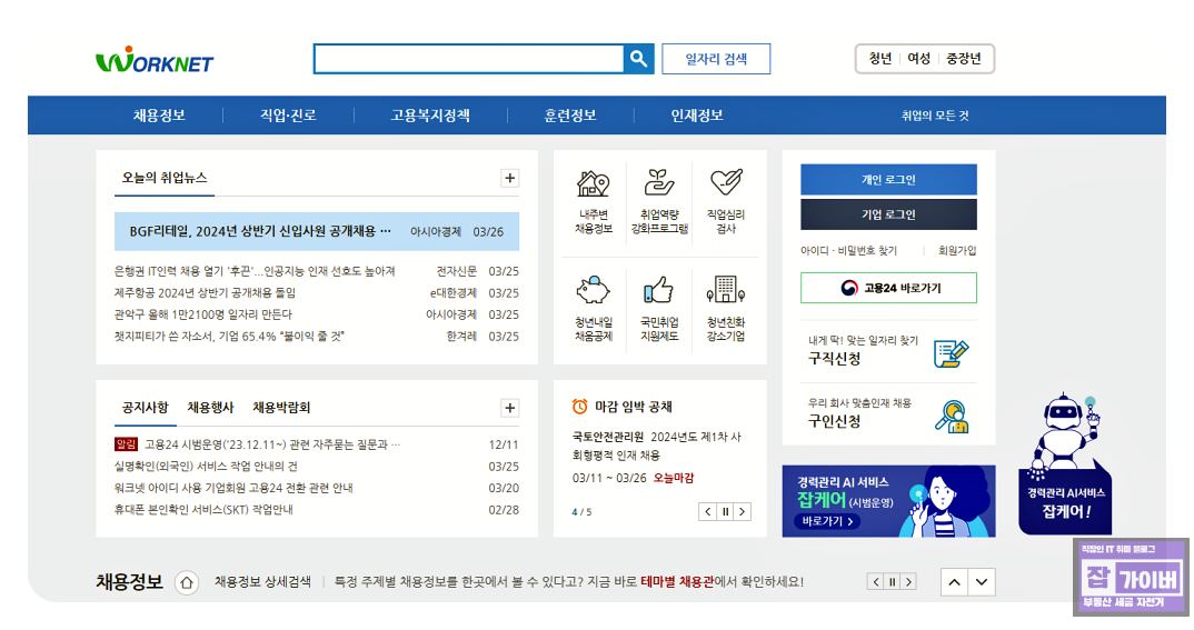 고용노동부 워크넷 홈페이지에 접속하여 로그인합니다.