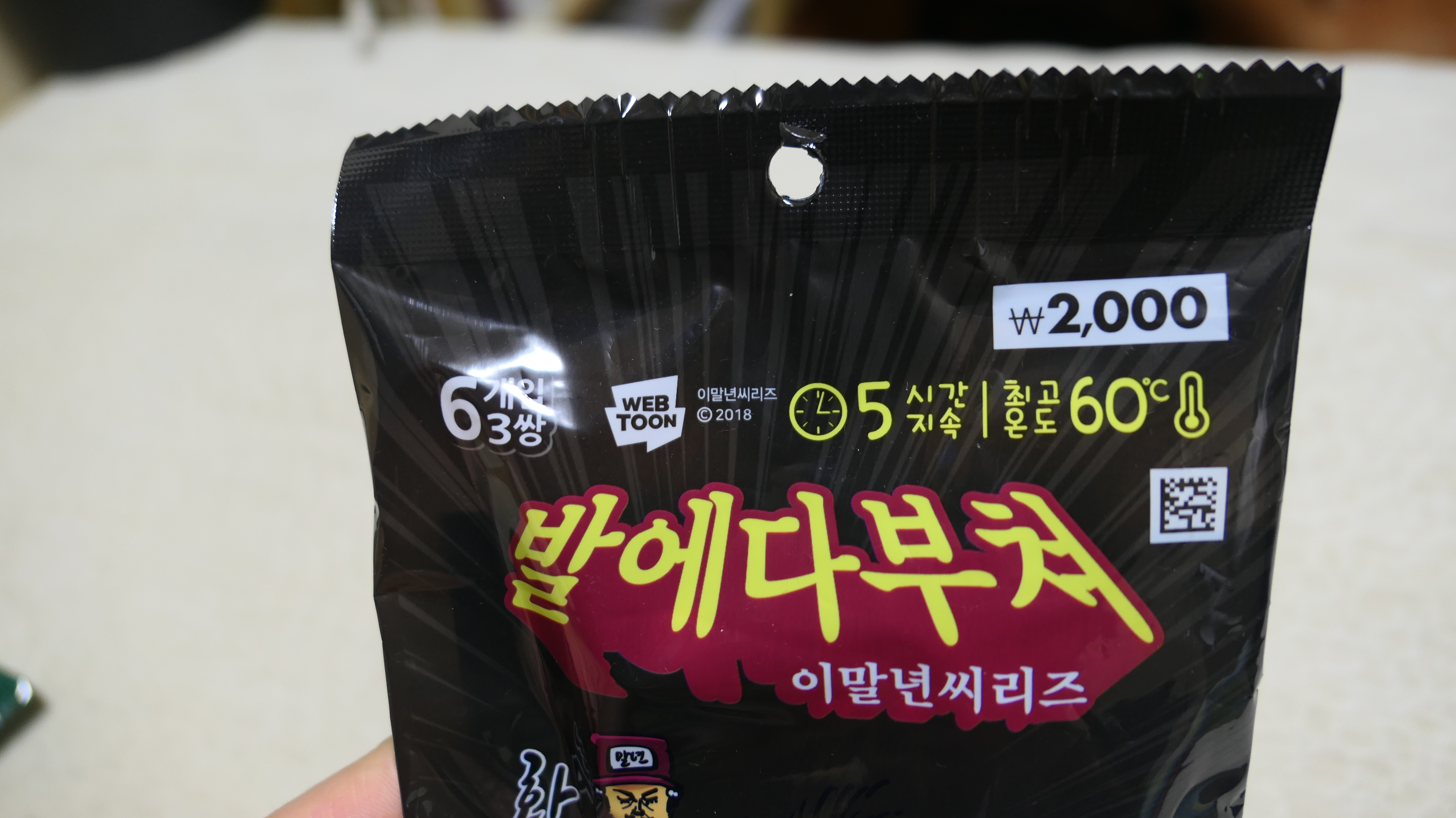 - 겁나오래핫팩(이말년 이미지): 1세트에 2천원으로 구입할 수 있습니다.
