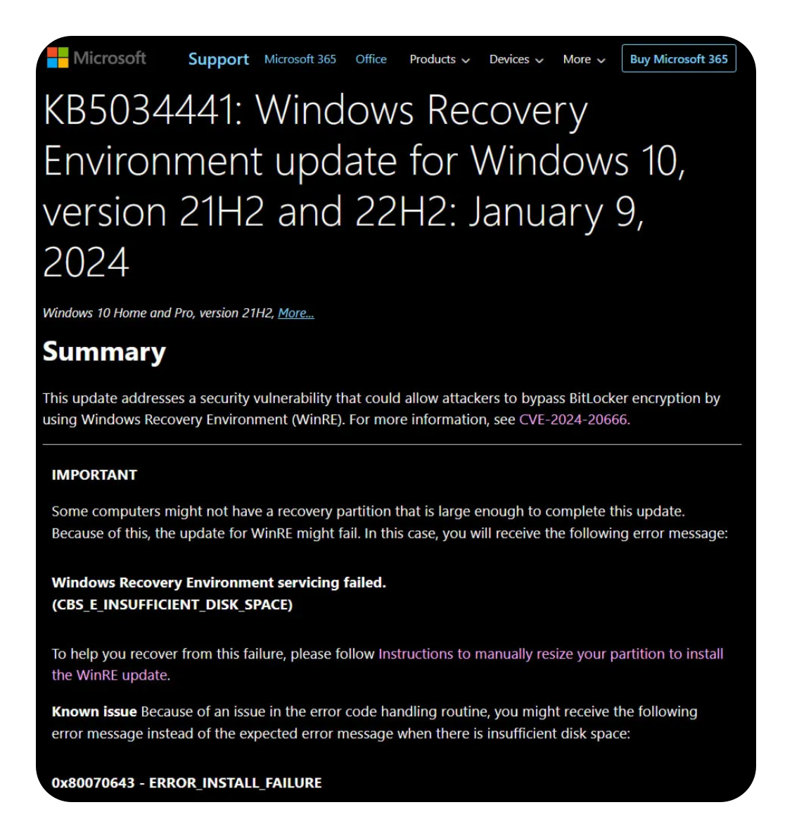 | 윈도우 10 | 22H2 | CVE-2024-21408 | Windows Hyper-V 서비스 거부 취약점 신규 발견 |