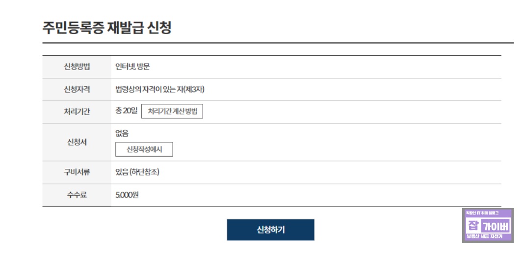 주민등록증 재발급 신청 시 20일 수수료 5천원