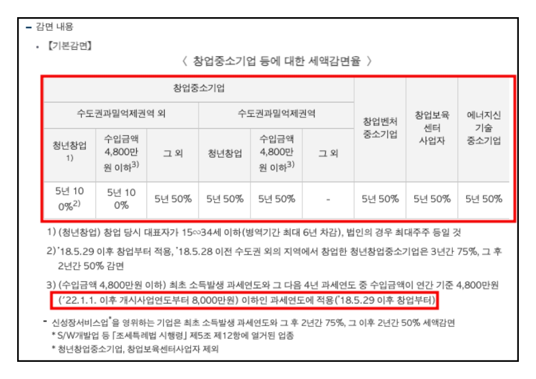 2. 세금 감면: 청년 창업 중소기업을 대상으로 종합소득세 및 법인세를 5년간 최대 100% 감면해줍니다.