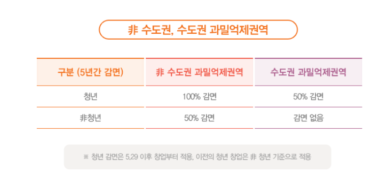 - 수도권 외인 경우: 나이와 무관하게 감면 가능
